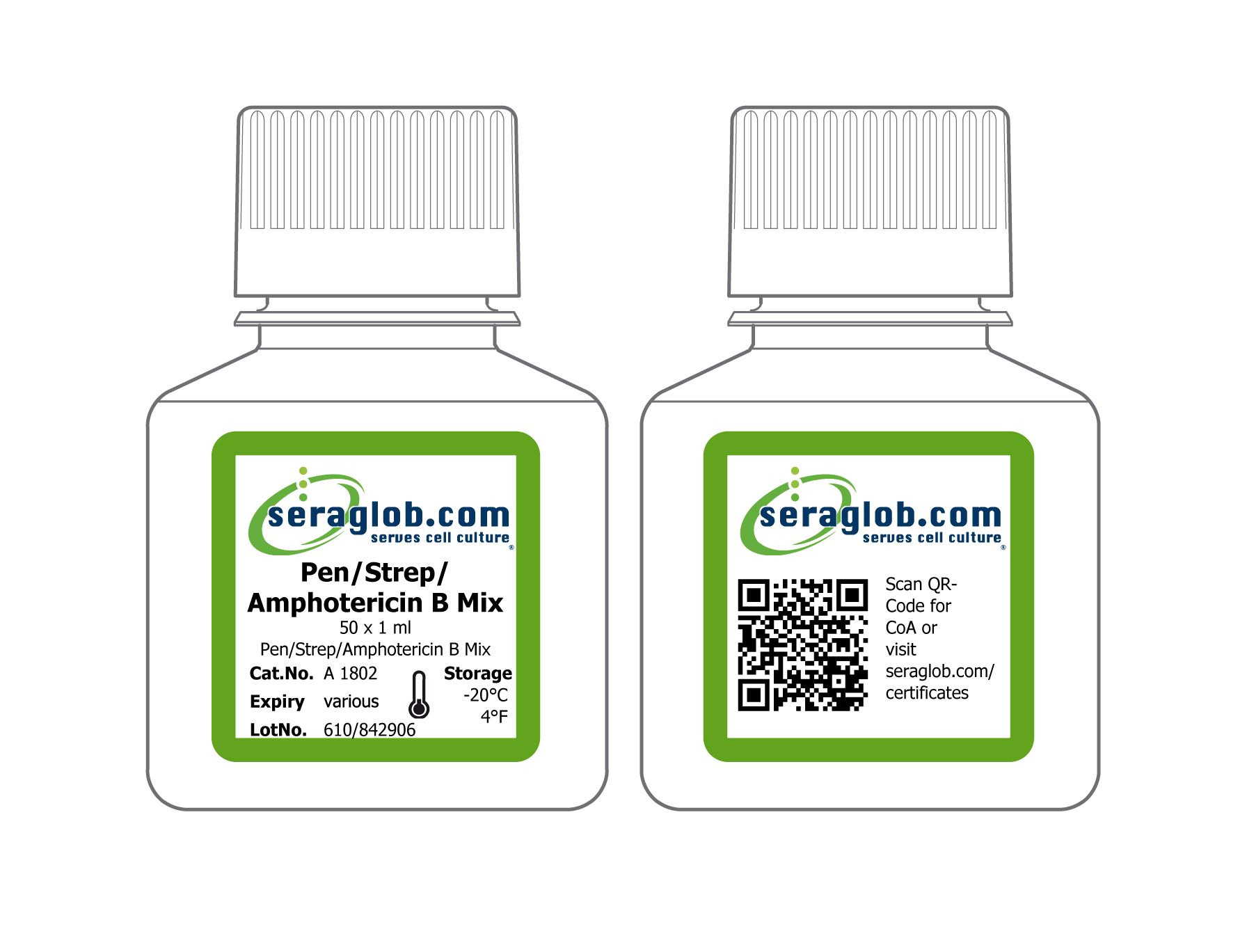 Pen/Strep/Amphotericin B Mix, single unit of 50 x 1 ml, storage at -20°C