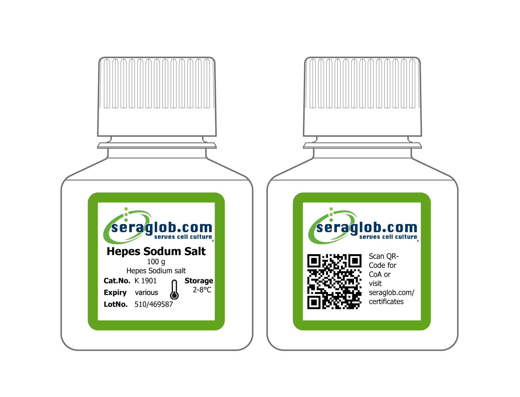 Hepes – Sodium salt, single unit of 100 g, storage at 2°C – 8°C